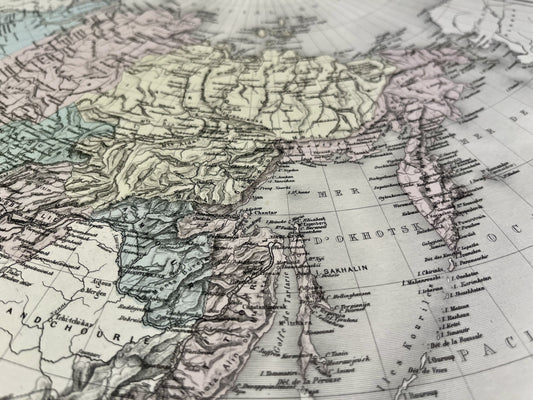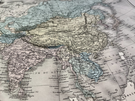Carte ancienne de l'Asie réhaussée en couleurs par V. Levasseur