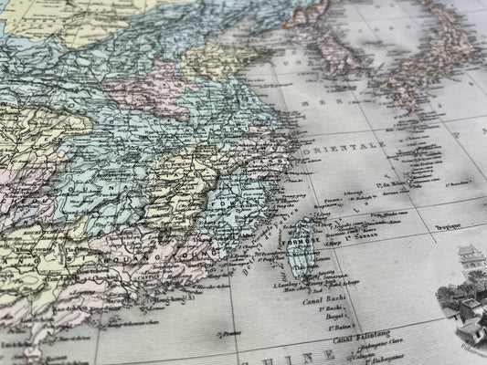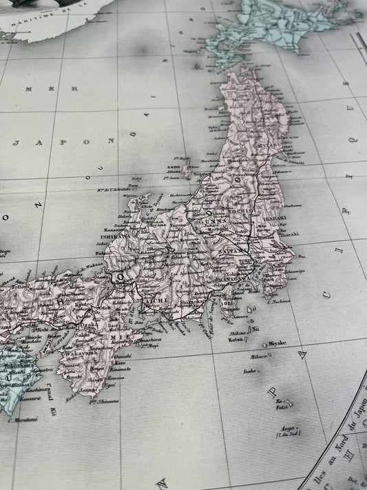 Grande carte ancienne de la Chine et du Japon par C.V. Monin - ca. 1860
