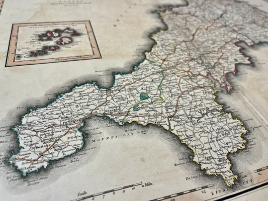 Carte ancienne du Comté de Cornouailles, Angleterre - 1804