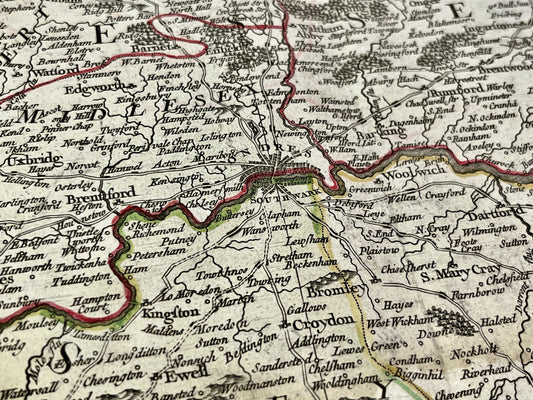 Carte ancienne des environs de Londres par C. Browne - 1778
