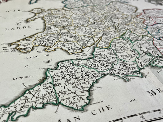 Carte ancienne de l'Angleterre et du Pays de Galles par N. Sanson - 1778