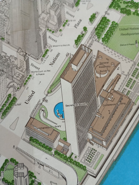 Plan vintage illustré de Midtown Manhattan, New York, par Constantine Anderson - ca. 1980