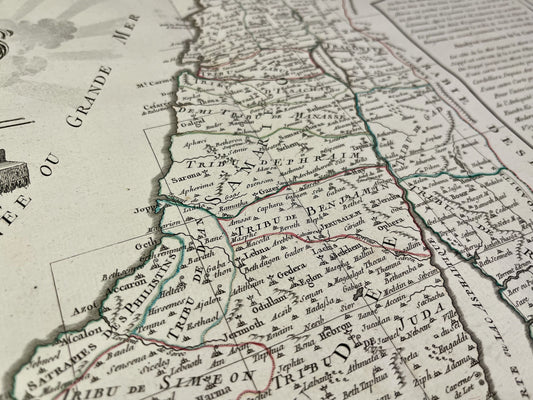 Carte ancienne des douze tribus d'Israël par R. Bonne - ca. 1760