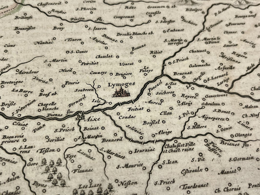 Carte ancienne du Limousin par J. Janssonius - ca. 1640