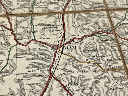 Grande carte routière ancienne du Gers par M. de Bordas - 1865