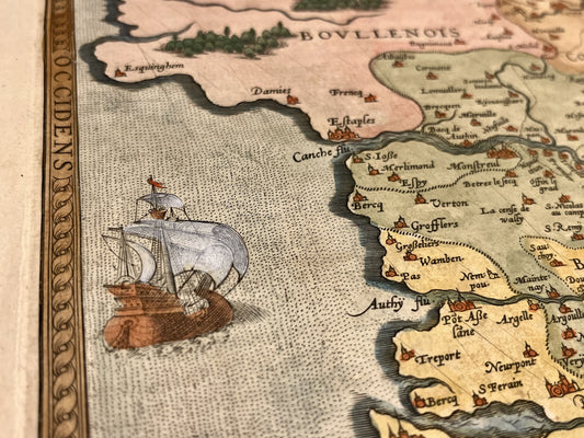 Carte ancienne des Comtés de Boulogne et de Guînes par J. Hondius - ca. 1600