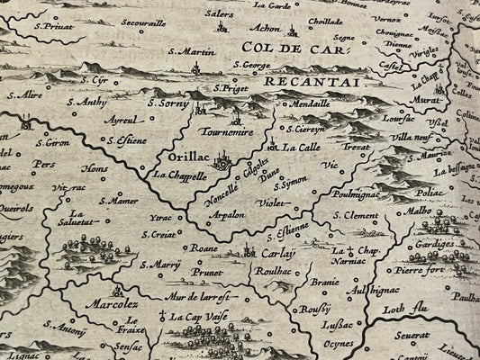 Carte ancienne du Duché d'Auvergne par J. Janssonius - ca. 1640