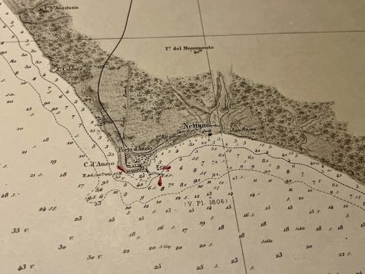 Carte marine ancienne de Fiumicino à Porto d'Anzio - Côte Ouest de l'Italie