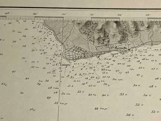 Carte marine ancienne du Cap Linaro à Fiumicino - Côte Ouest de l'Italie