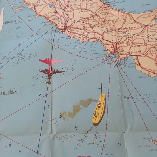 Carte géographique et illustrée d'Italie par route, rail, mer et air - 1953