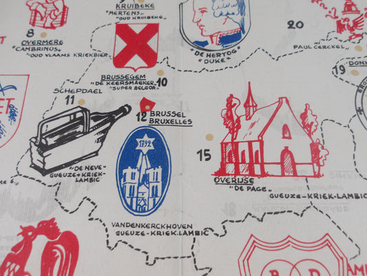 Carte des Bières Spéciales Régionales de Belgique - 1954