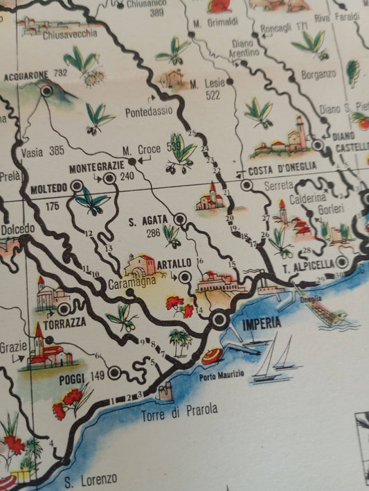 Carte des Excursions de la Riviera dei Fiori (Italie) par Aldo Cigheri - ca. 1950