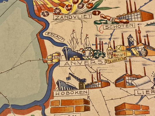Carte illustrée ancienne de la Province d'Anvers par la CGER - ca. 1950