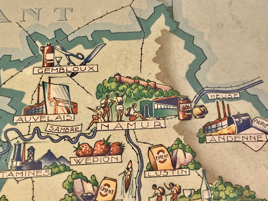 Carte illustrée ancienne de la Province de Namur par la CGER - ca. 1950