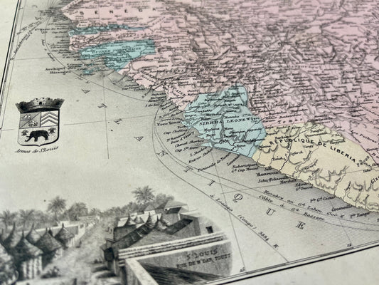 Antique map of the African coast from Senegal to Benin by A. Vuillemin