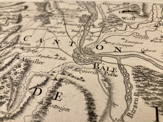 Antique map of the course of the Rhine from Basel to Hert in five parts by GL. Le Rouge - 1745