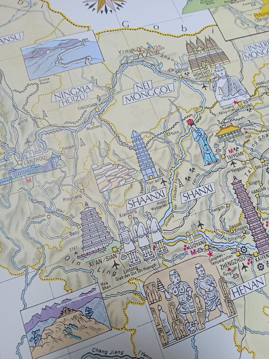 Cultural Illustrated Map – North China (German Edition) – 1970s-80s