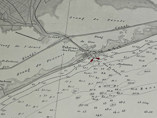 Antique nautical chart from Palavas-les-Flots to Saintes-Maries-de-la-Mer