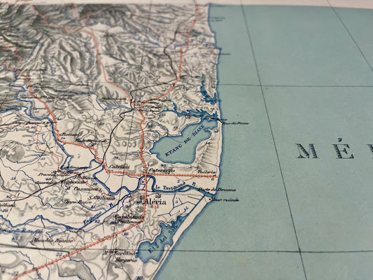 Old illustrated geographical map of Provence and Corsica by O. Poisson - ca. 1950