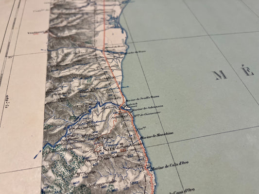 Antique handwritten map of the Gulf of Ajaccio by the Army Engineers - ca. 1850