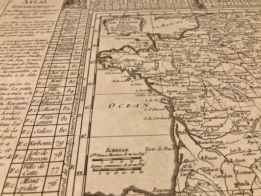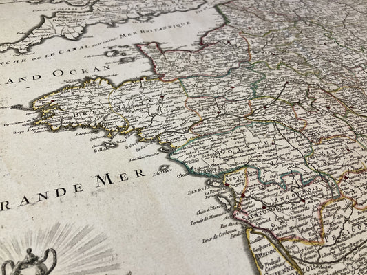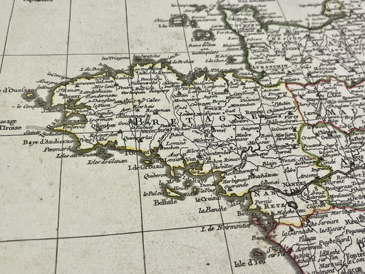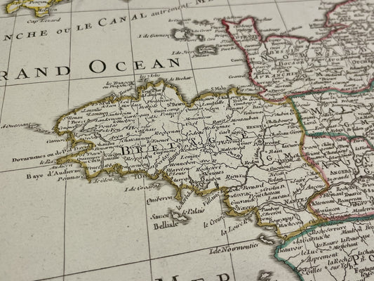 Antique map of the Kingdom of France by G. Robert de Vaugondy - ca. 1750