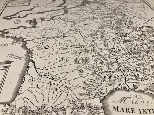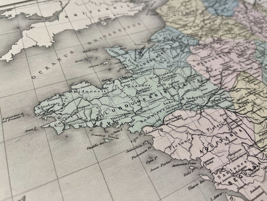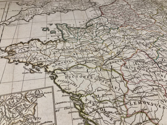 Old map of ancient Gaul by N. Sanson d'Abbeville, revised by R. de Vaugondy