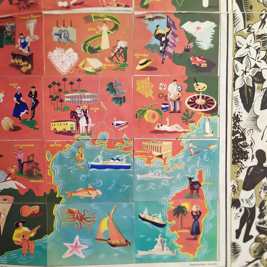 Advertising Map of the Provinces of France by Cafés Maurice - 1950s