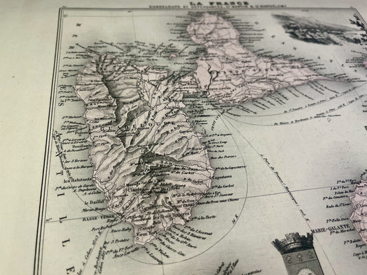 Old map of Guadeloupe by A. Vuillemin