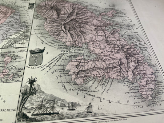 Old map of Martinique and Guyana by A. Vuillemin