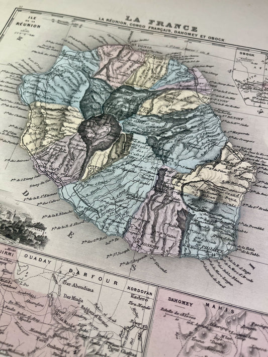Old map of Réunion by A. Vuillemin