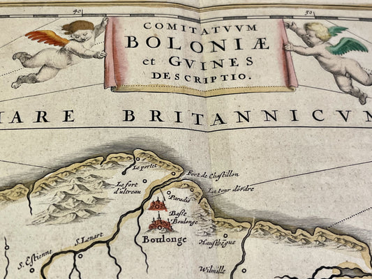 Carte ancienne des Comtés de Boulogne et de GuÎnes par W. Blaeu - ca 1640