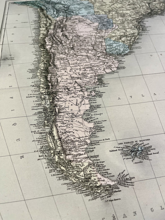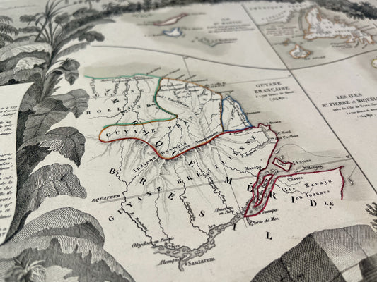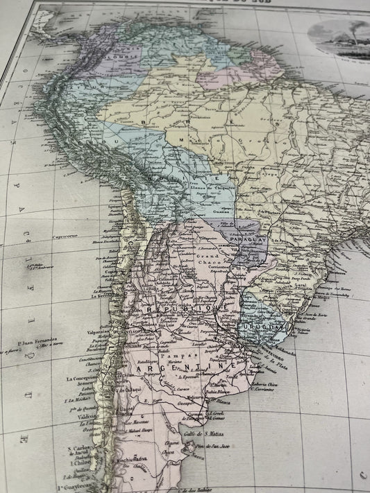 Large antique map of Brazil and Argentina by CV Monin - ca. 1860
