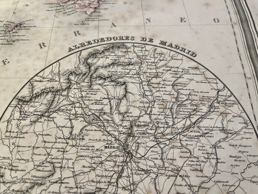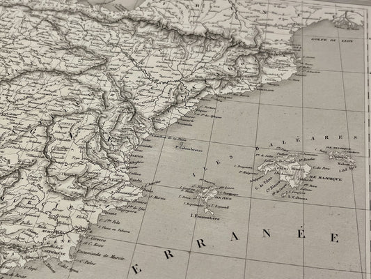 Grande carte ancienne de l'Espagne et du Portugal par A.H. Dufour - ca. 1860