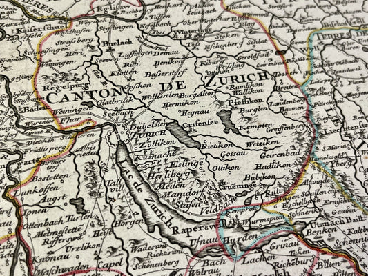 Antique map of Zurich and its surroundings by the french Dépôt de la Guerre