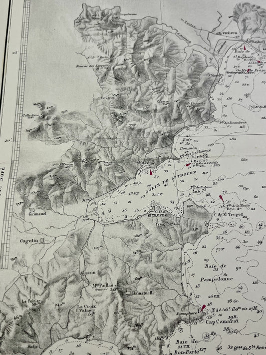Antique nautical chart from Saint-Tropez to Menton