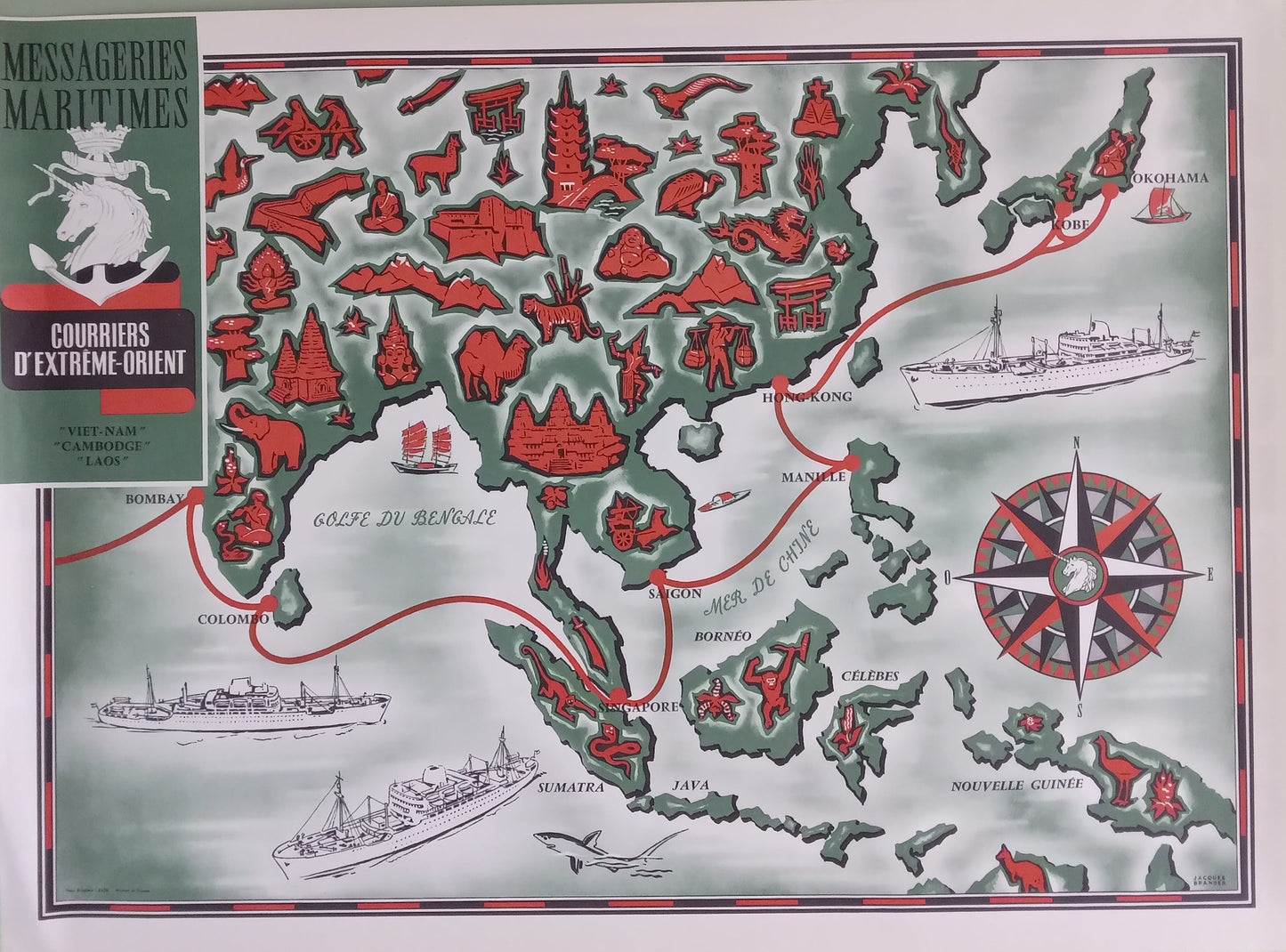 Poster of the Messageries Maritimes - Far Eastern Lines - 1950s
