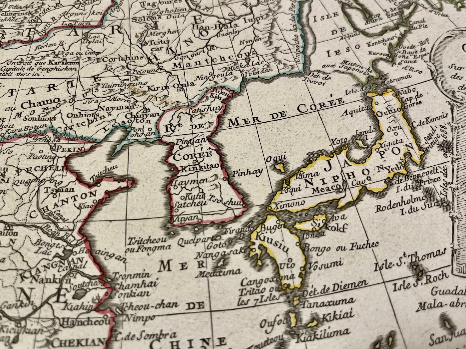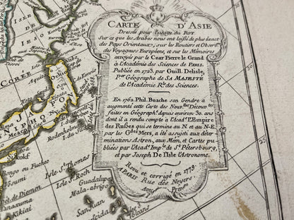 This antique map of Asia was published in 1723 by Guillaume Delisle and then revised and corrected in 1779. Its dimensions are 73x53.5cm.