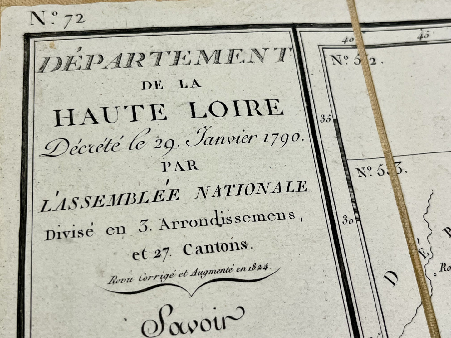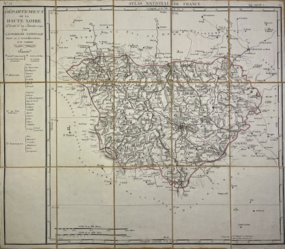 This antique map of the Haute-Loire department is canvas-backed and was created by the French geographer Pierre-Gilles Chanlaire in the early 19th century. It is from the Atlas National de France and measures 62x54cm.