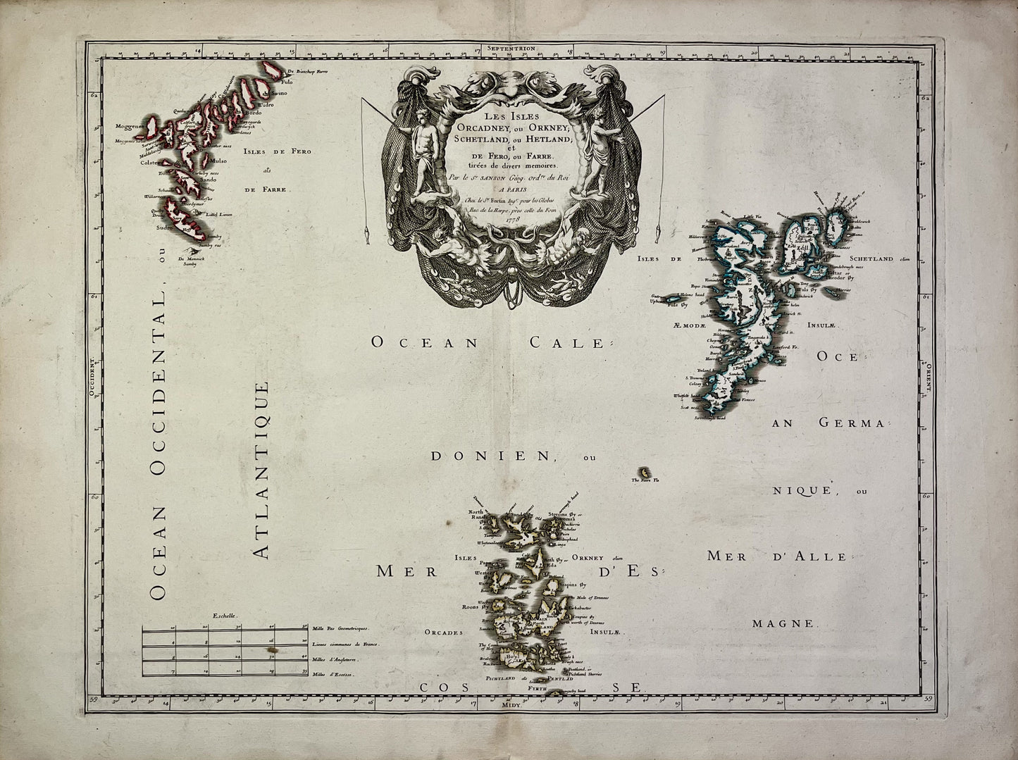 Antique map of the Orkney, Faroe and Shetland Islands by N. Sanson - 1778