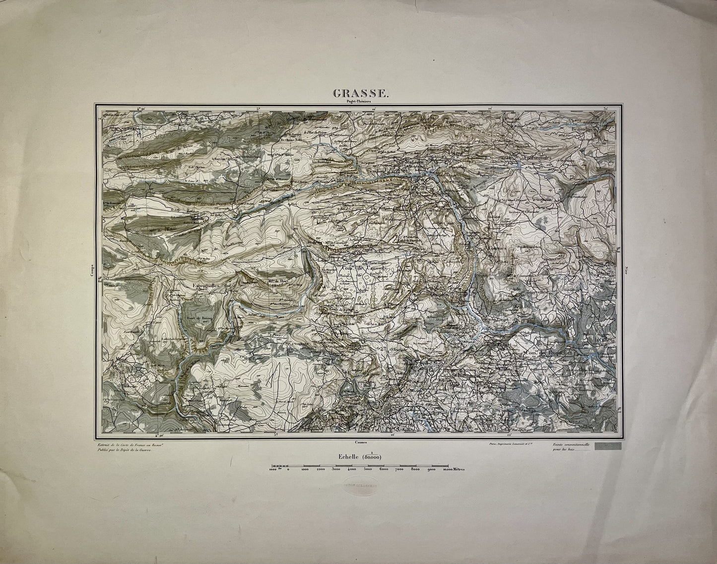 This General Staff map entitled "Grasse" was printed by the War Depot before 1887 on thick paper measuring 57x44.5cm.