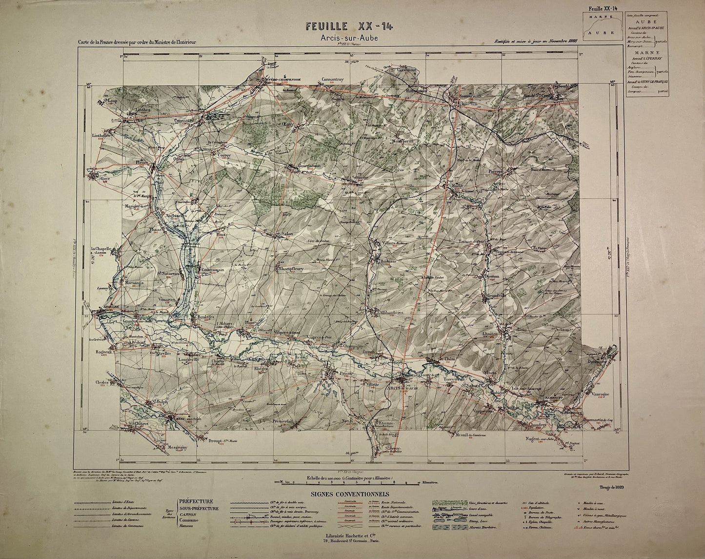 This old map of Aube entitled "Arcis-sur-Aube" (XX-14), was produced by the Ministry of the Interior from the end of the 19th to the beginning of the 20th century. Its dimensions are 57x45cm. To learn more, discover my article on the Vicinal Service map .