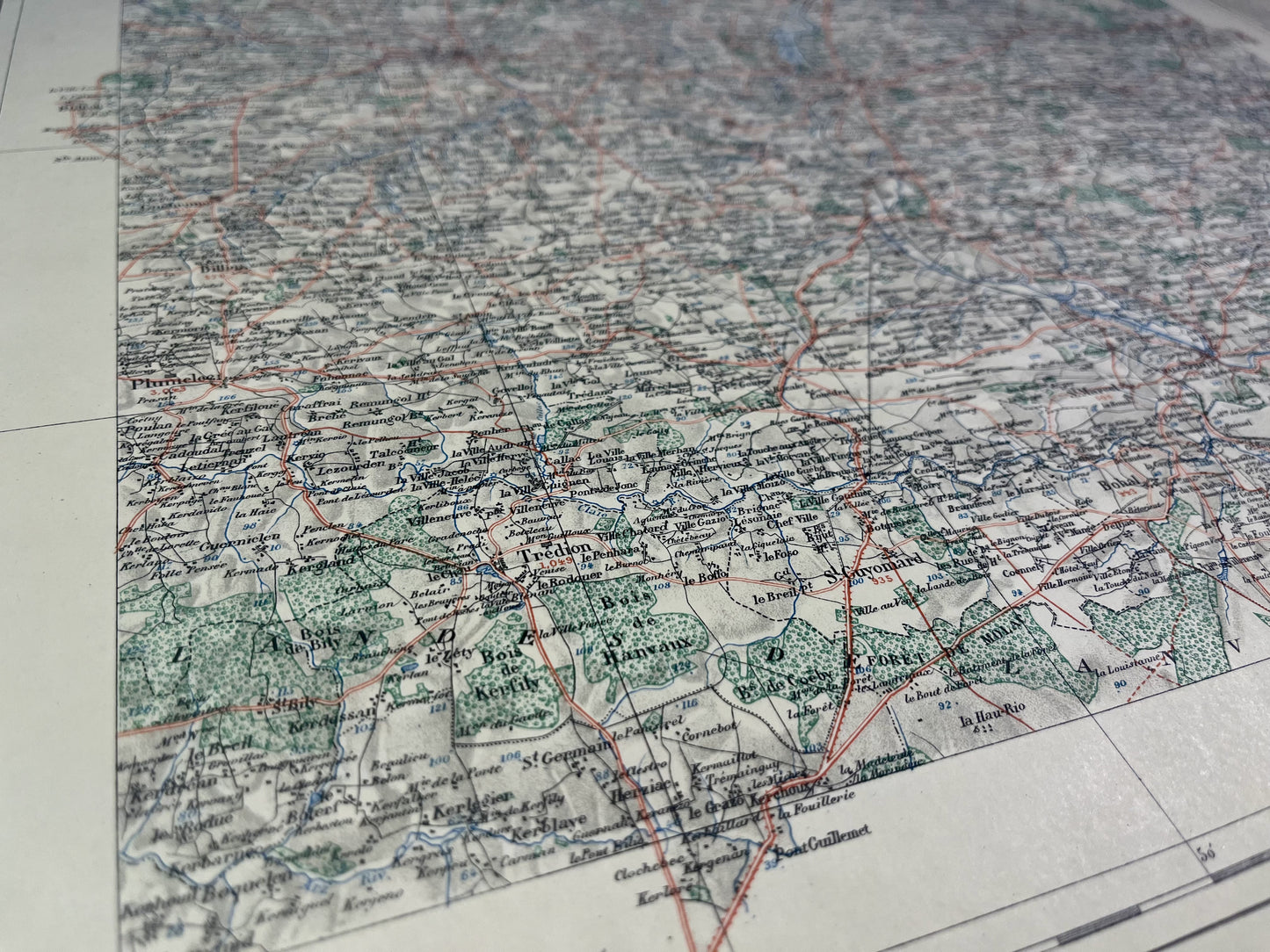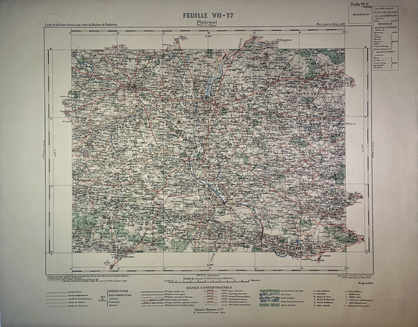 This old map of Morbihan entitled "Ploërmel" (VII-17), was produced by the Ministry of the Interior from the end of the 19th to the beginning of the 20th century. Its dimensions are 57x45cm. To find out more, read my article on the Vicinal Service map .