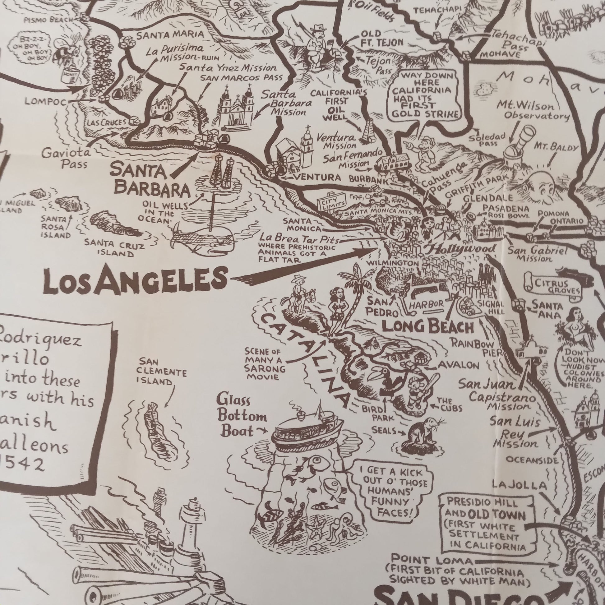 Vintage Humorous Illustrated Map – "Cartoon Map of California" by Reg Manning, 1939