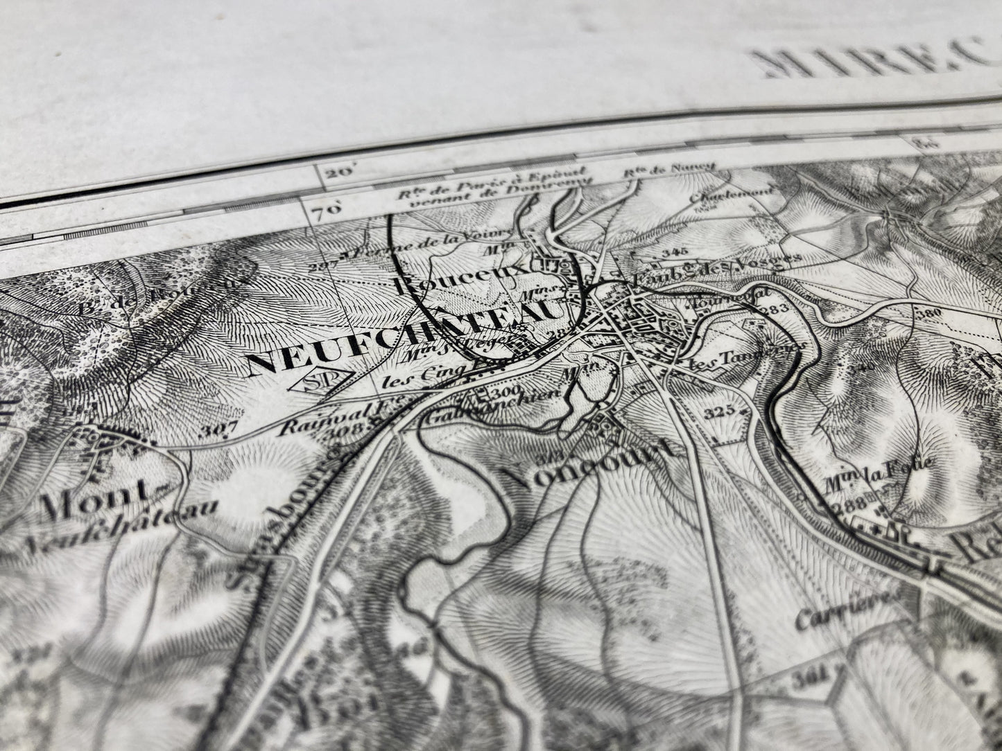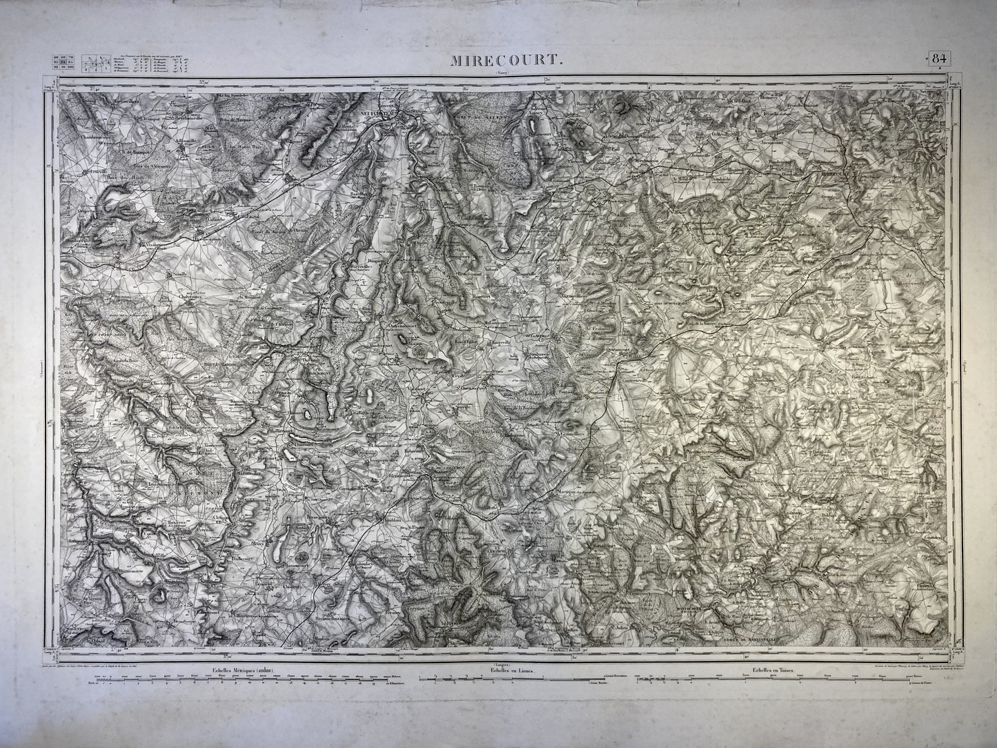 This General Staff map entitled "Mirecourt" (N°84) was printed by the Dépôt de la Guerre before 1887 on thick paper measuring 100x67.5cm.