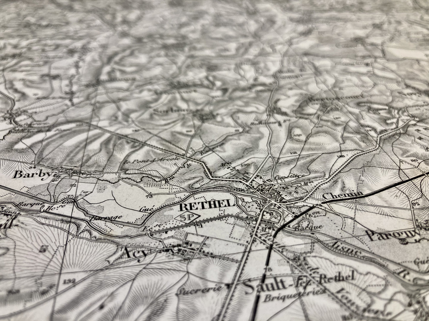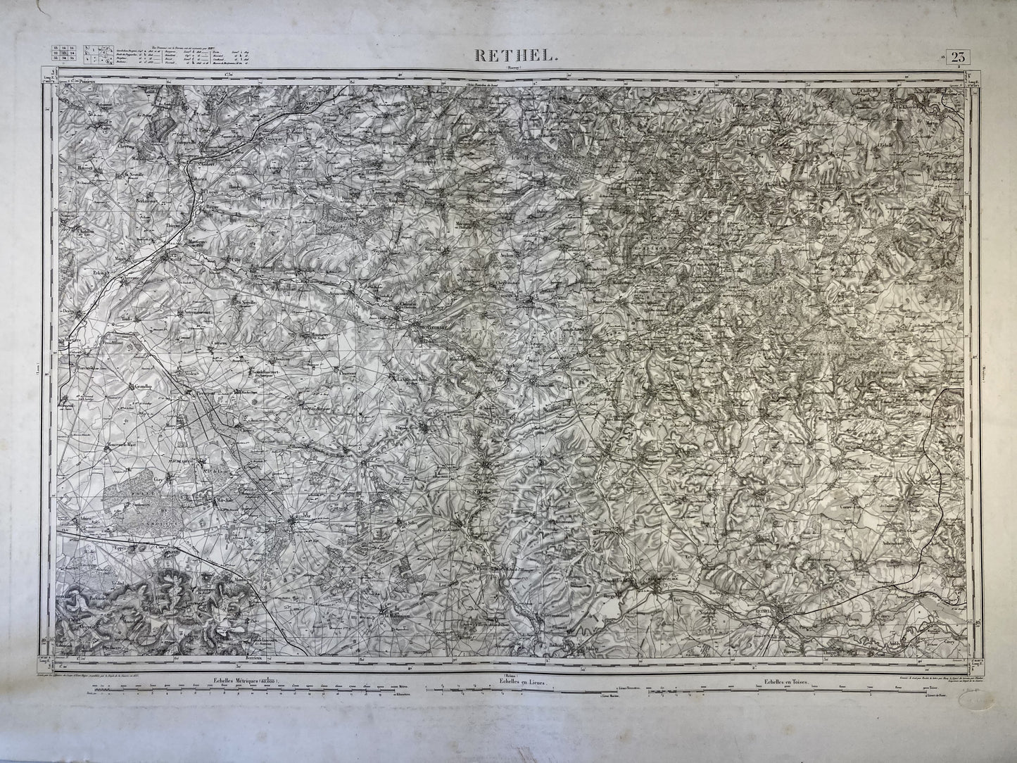 This General Staff map entitled "Rethel" (No. 23) was printed by the War Depot before 1887 on thick paper measuring 100x67.5cm.