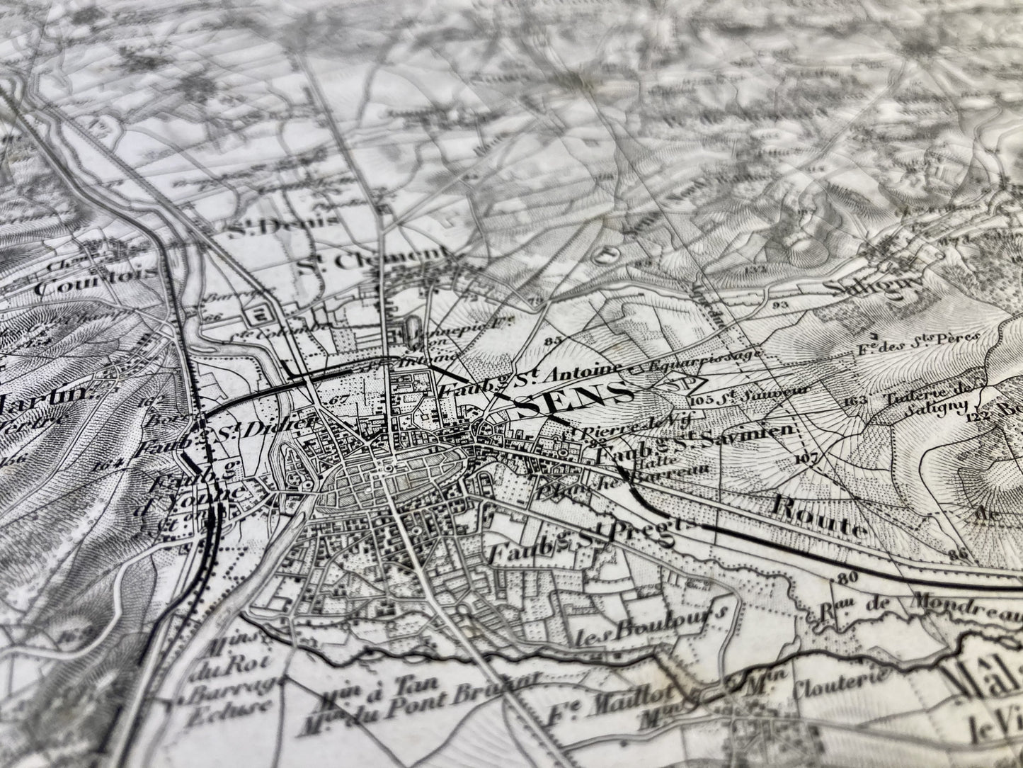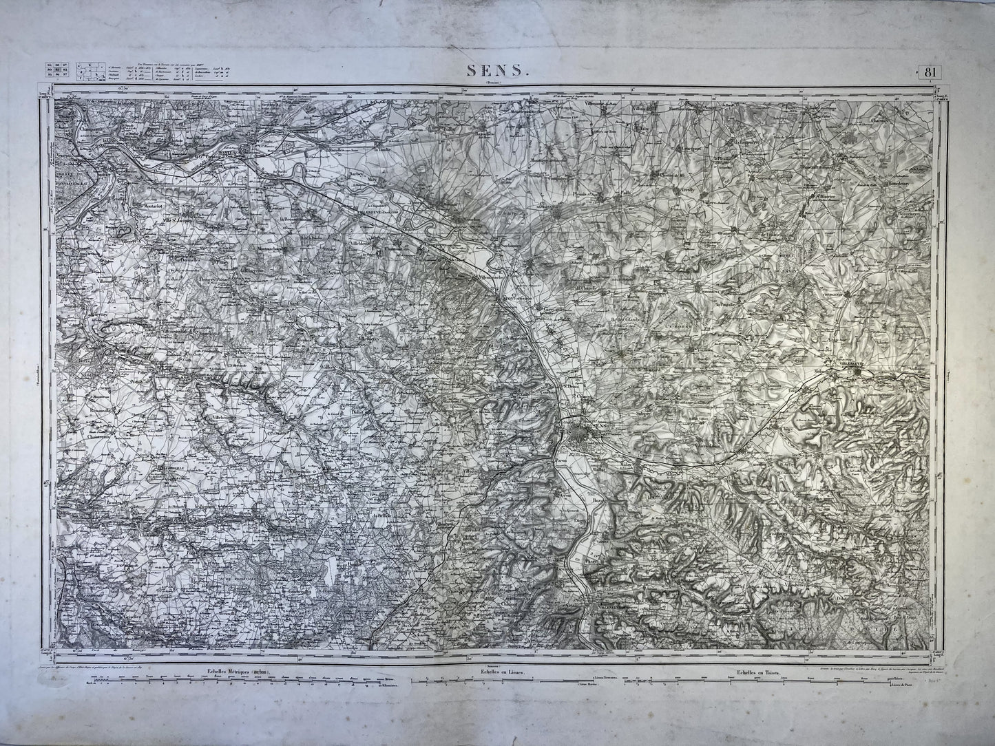 This General Staff map entitled "Sens" (No. 81) was printed by the War Depot before 1887 on thick paper measuring 100x68cm.