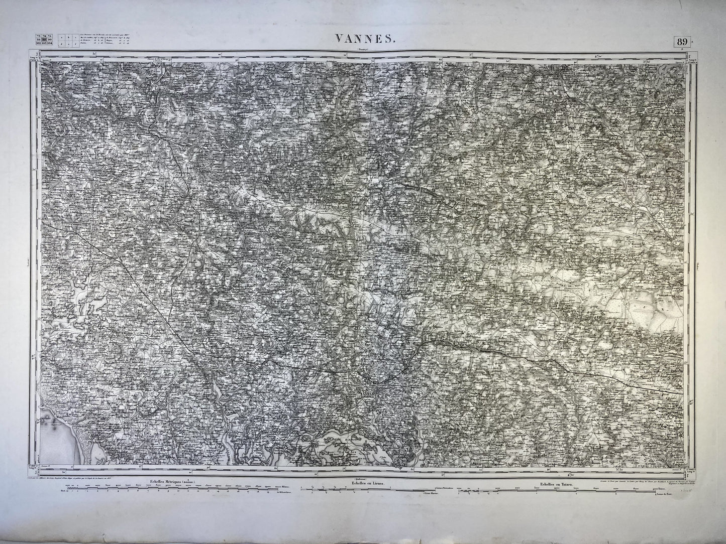 This General Staff map entitled "Vannes" (N°89) was printed by the War Depot before 1887 on thick paper measuring 100x68cm.
