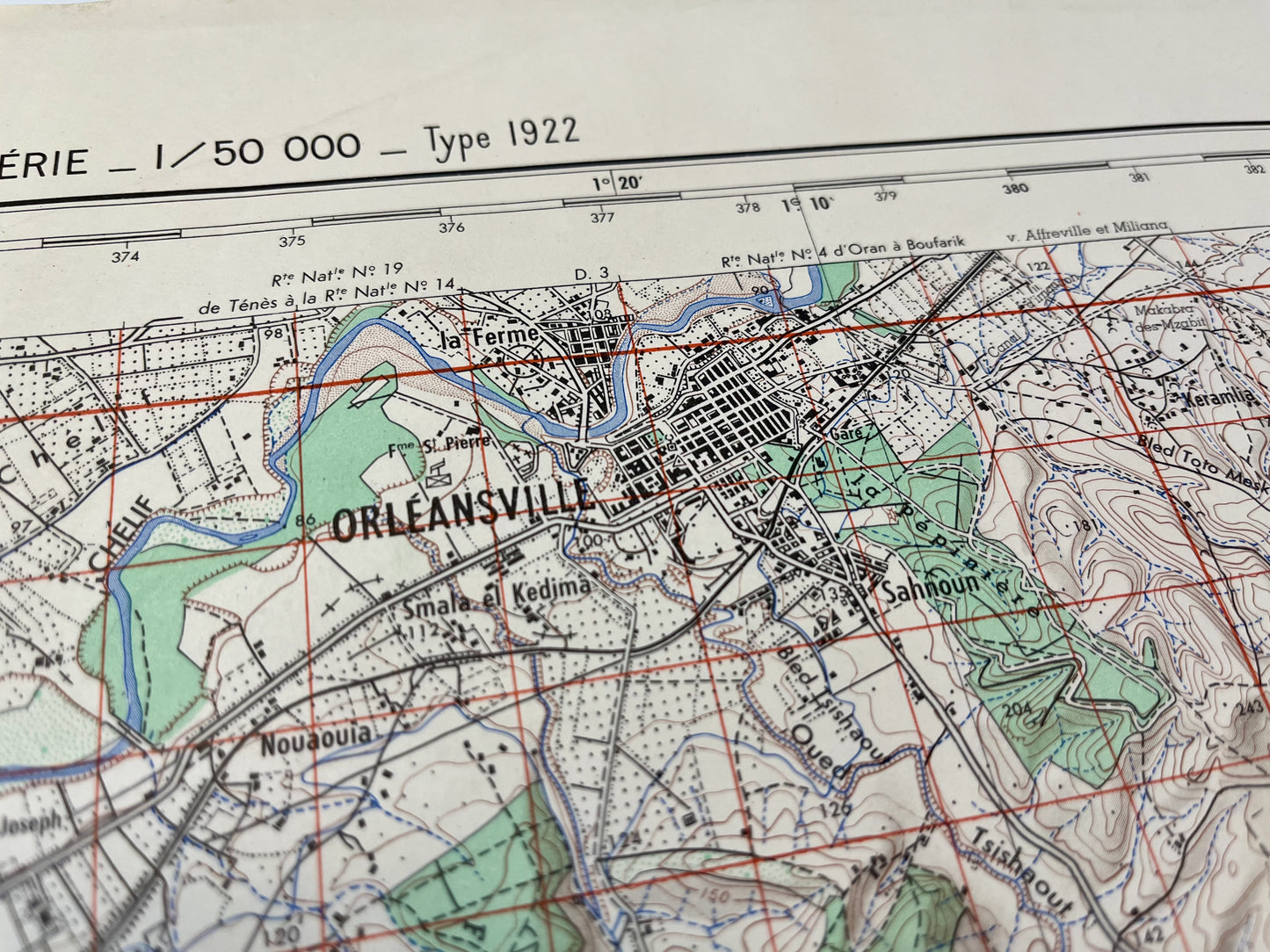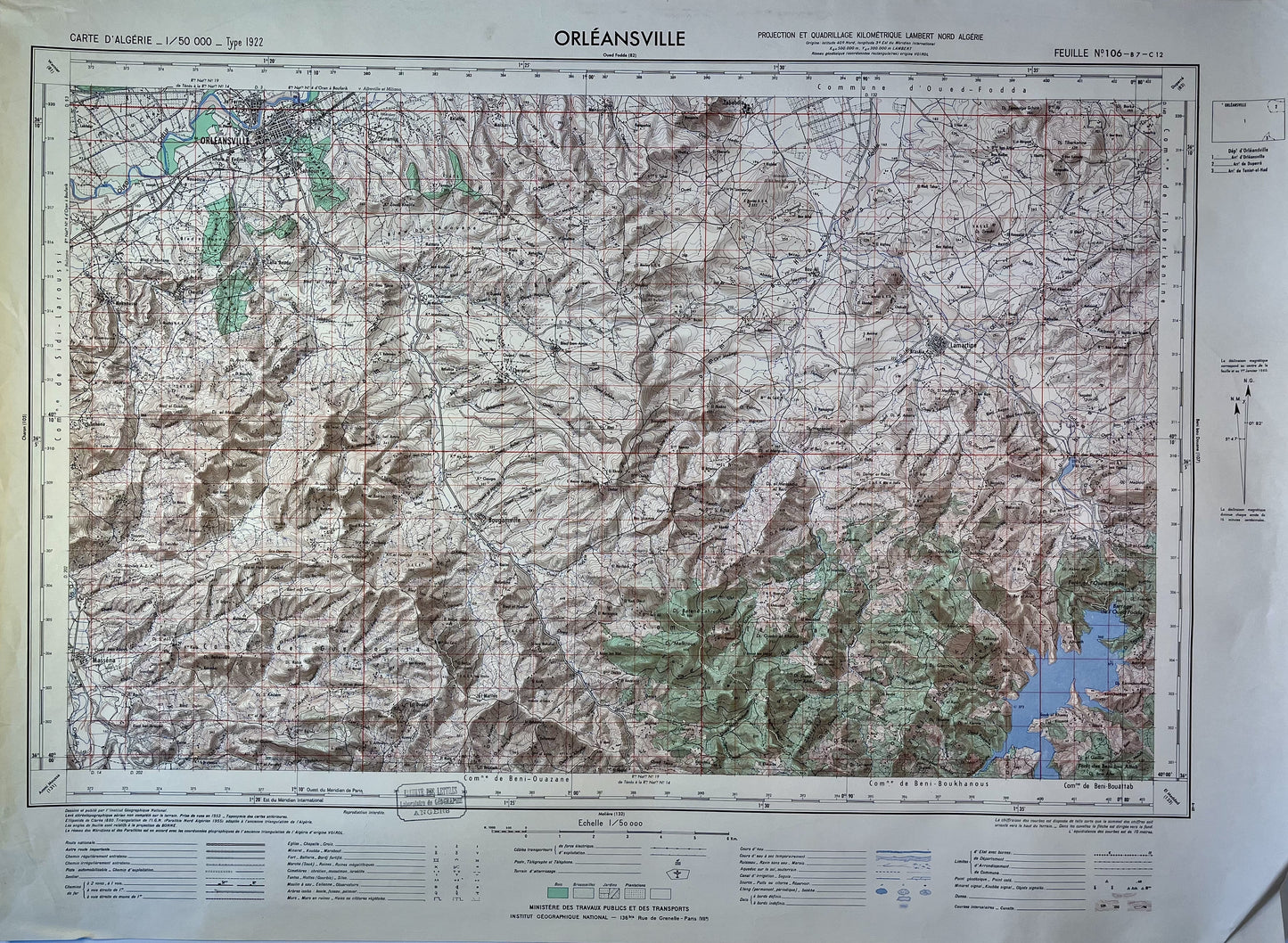 This old map of Algeria, country of Maghreb, represents the region of Orléansville, Chlef today. It was published by IGN in 1960 and its size is 75x55.5cm.
