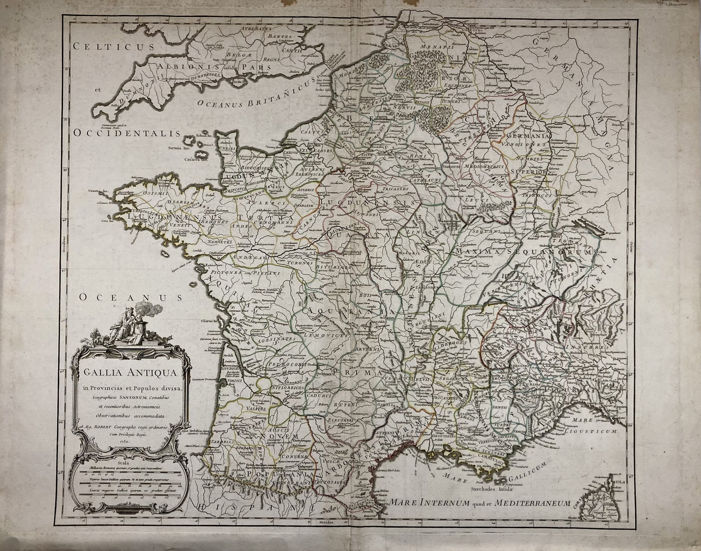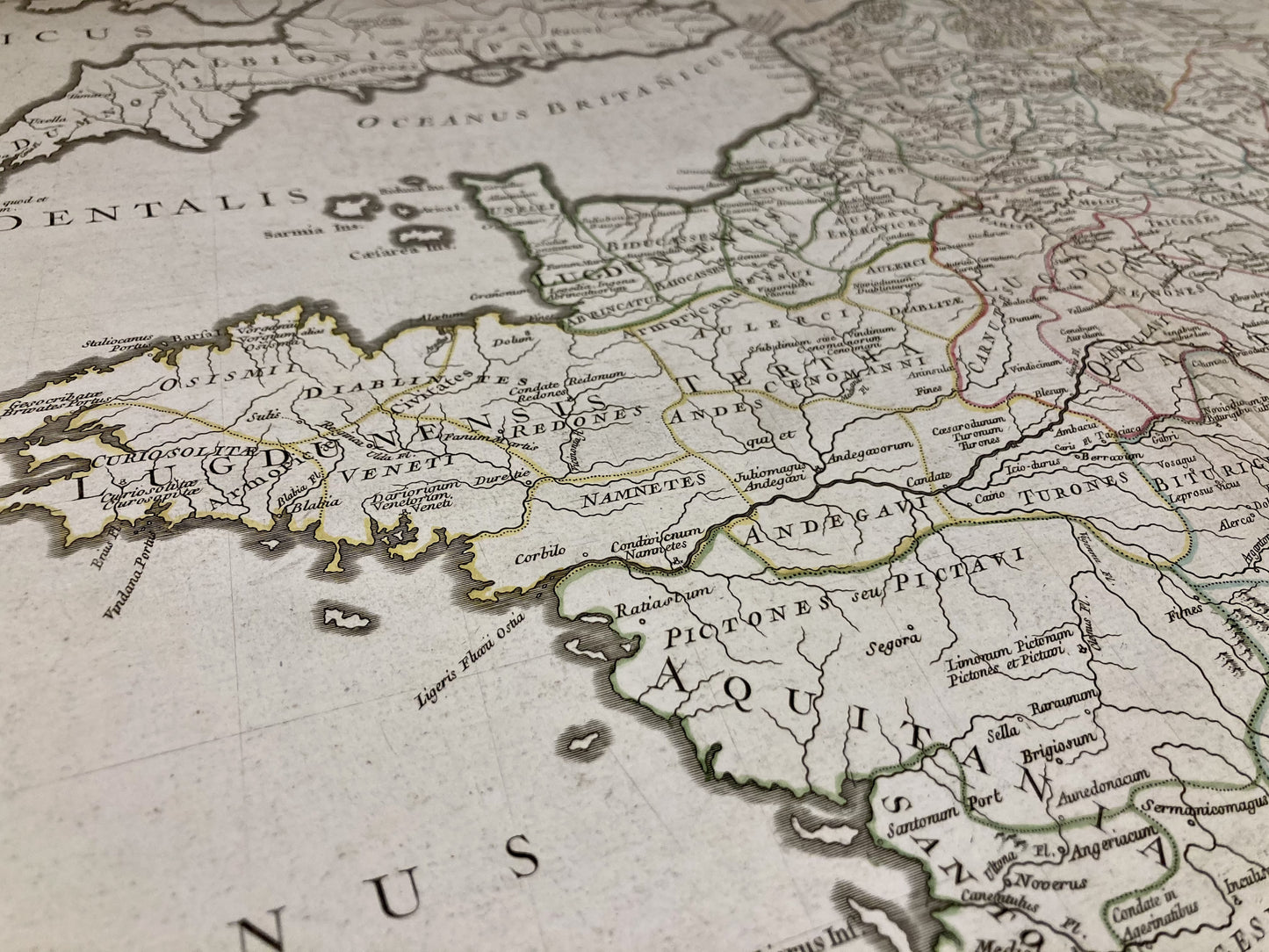 Old map of ancient Gaul by N. Sanson d'Abbeville, revised by R. de Vaugondy