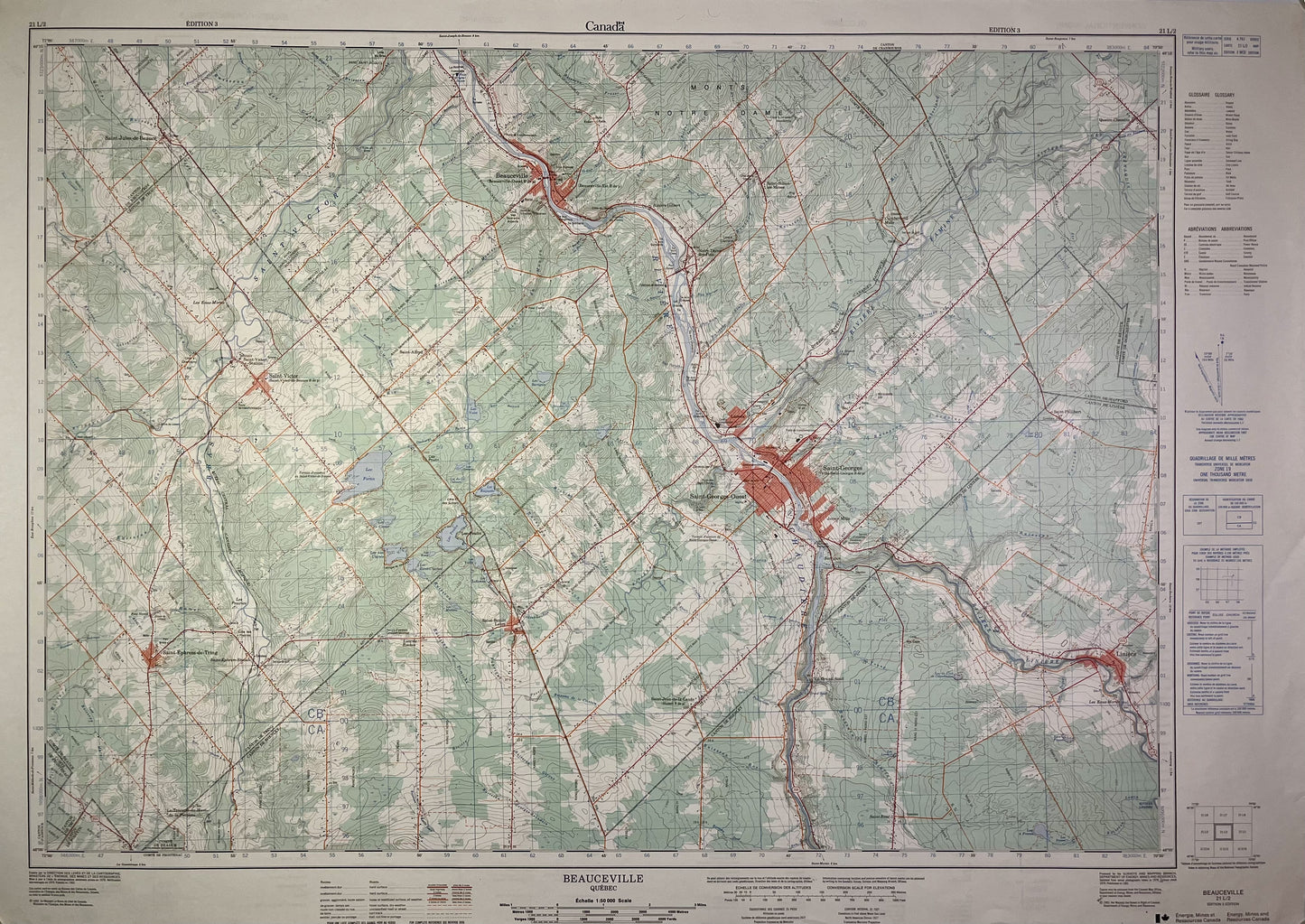 This old map of Canada represents the town of Beauceville and its surroundings, located in Quebec. It was published by the Department of Energy, Mines and Resources of Canada in 1983 and its dimension is 91.5x65cm.